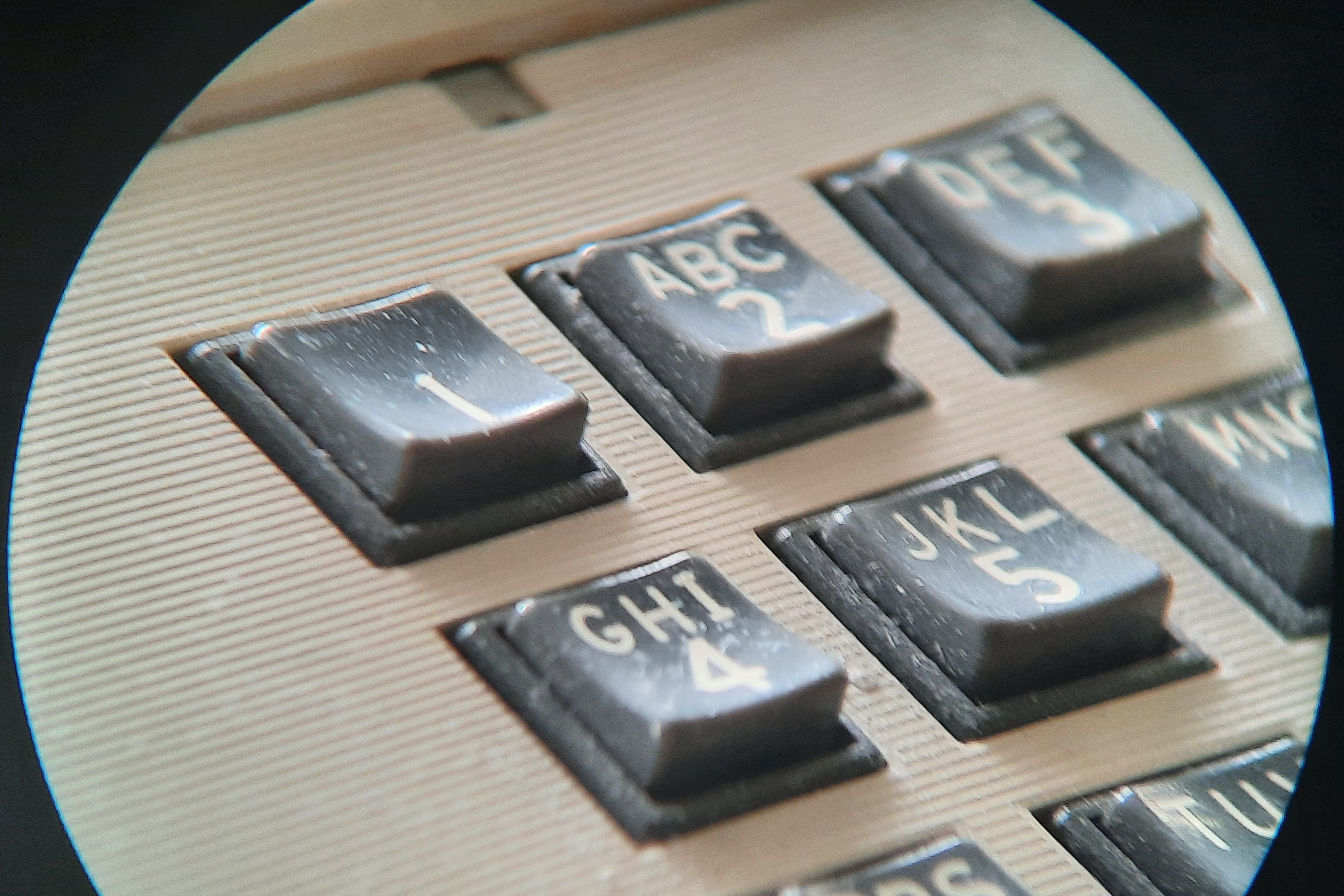 Notice that distant keys go out of focus: this is not an artifact. The depth of focus is especially narrow at short distances, and I’ve found that this is actually quite nice. For example, you can point the binoculars at a pond, focus past the surface of the water, and clearly see the critters at the bottom.